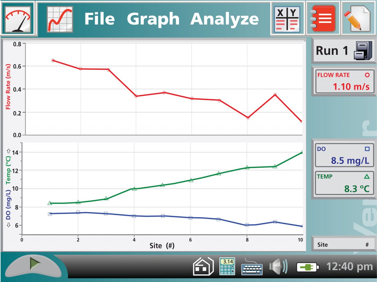 Dieser Sensor wird zum einfachen Messen der Fliessgeschwindigkeit in Gewässern für Umweltstudien oder in Geowissenschaften benutzt. Damit lässt sich beispielsweise der Sedimenttransport in Flüssen abschätzen.
